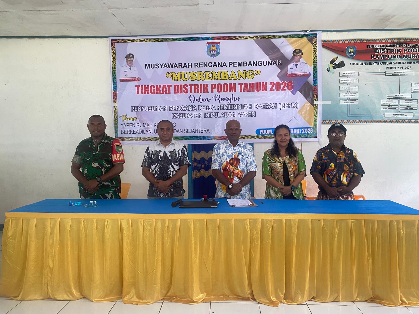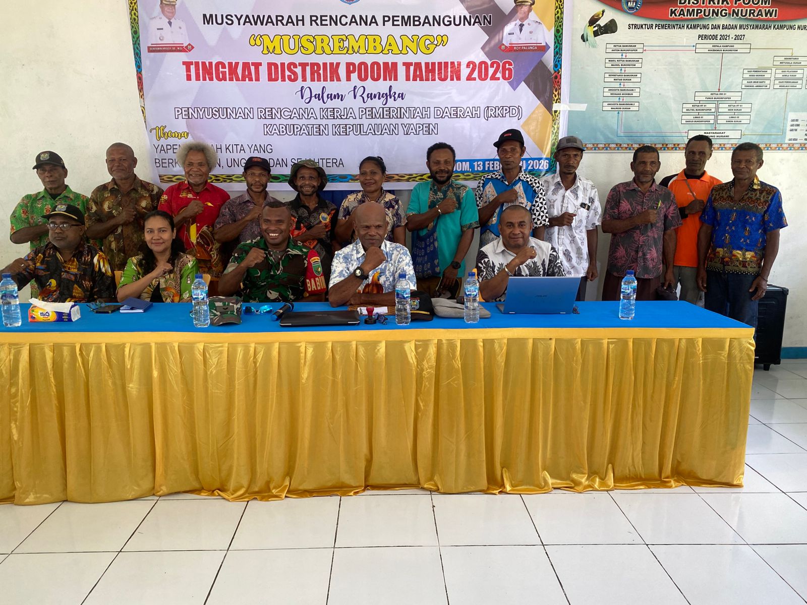 Musrenbang ini menjadi forum penting untuk menghimpun usulan program pembangunan dari seluruh kampung yang ada di Distrik Poom, sekaligus menyelaraskan kebutuhan masyarakat dengan arah kebijakan pembangunan pemerintah daerah.