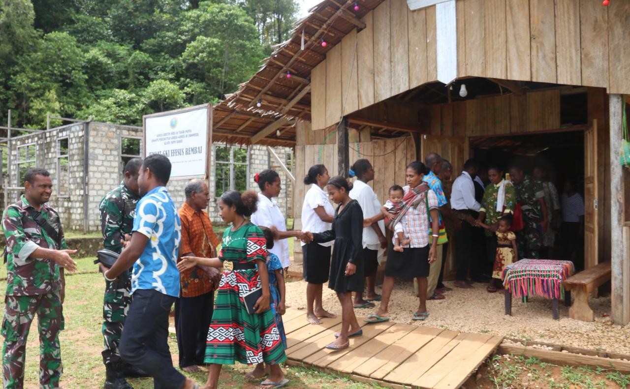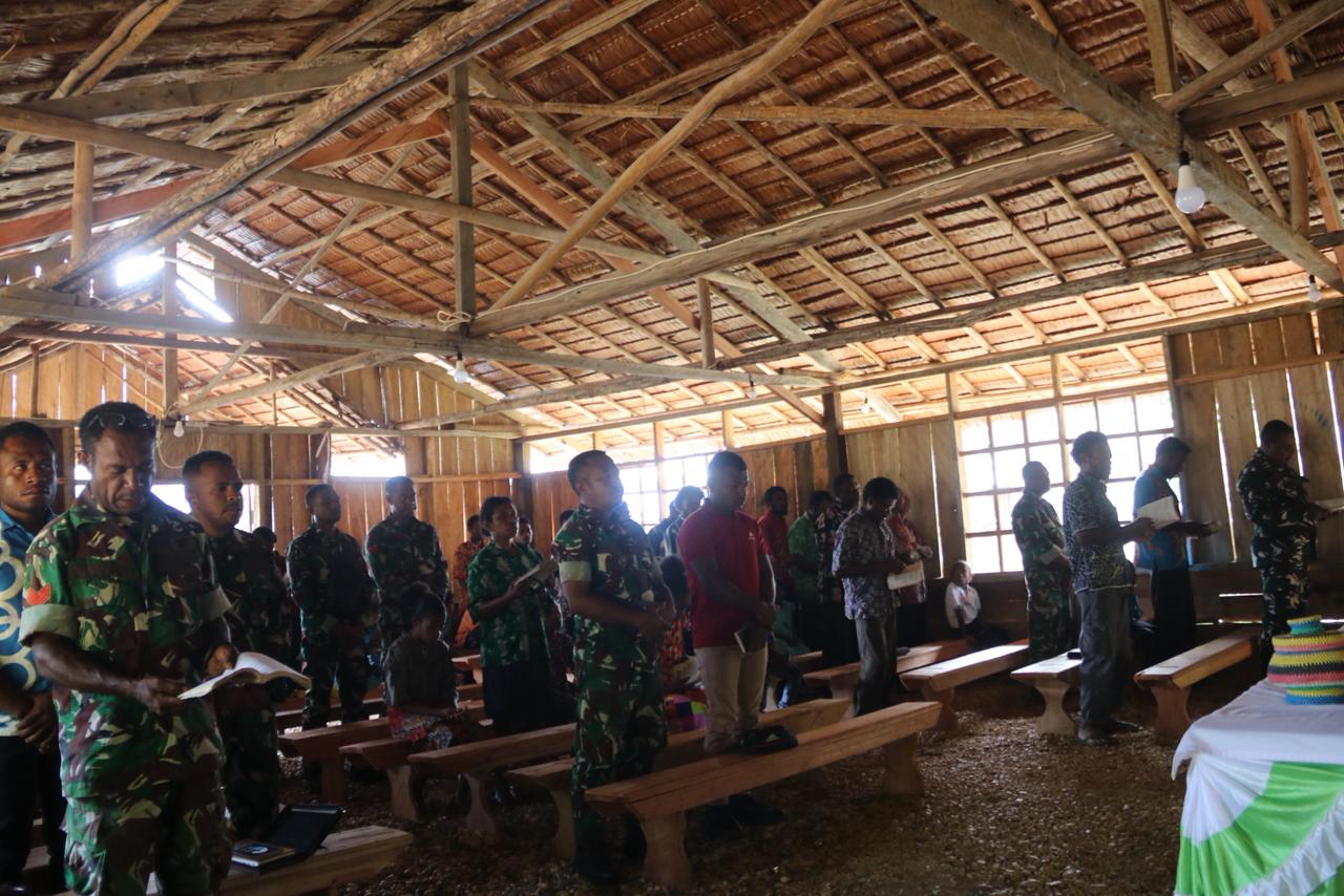 Seragam Loreng, Terpancar Iman: Satgas TMMD Kodim 1709 Yawa Beribadah Bersama Jemaat GKI Efesus Rembai