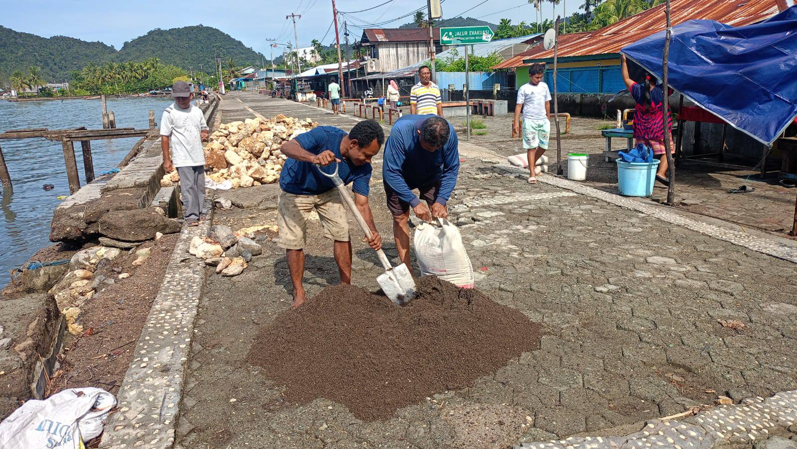 Serui Pos – Kepedulian warga kembali terlihat di lingkungan RW (Rukun Warga) 1 Cinatua, Kelurahan Serui Jaya, Distrik Yapen Selatan. Seorang nelayan setempat, Bapak H. Jamaludin, menunjukkan sikap simpatik dengan memberikan bantuan material berupa batu, pasir dan semen untuk memperbaiki talud Cinatua yang rusak akibat gelombang laut.
