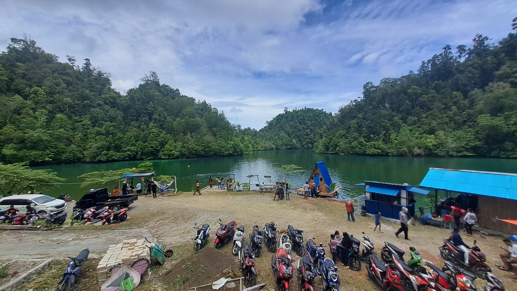 As an eco-tourism destination, Karopai provides various facilities for visitors. Entrance fees are IDR 10,000 per motorcycle and IDR 50,000 per car. Available amenities include a homestay for IDR 300,000, banana boat rental for IDR 300,000, speed boat rental for IDR 300,000, gazebo rental for IDR 100,000, and boat rental for IDR 50,000.
