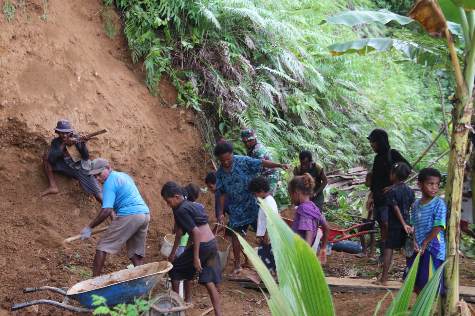 Raut wajah bahagia dan penuh syukur terpancar dari masyarakat yang terlibat langsung dalam proses pembangunan. Kebersamaan antara TNI dan warga tampak nyata saat mereka bersama-sama memasang pondasi, mengangkat material, hingga merapikan area sekitar lokasi pekerjaan.