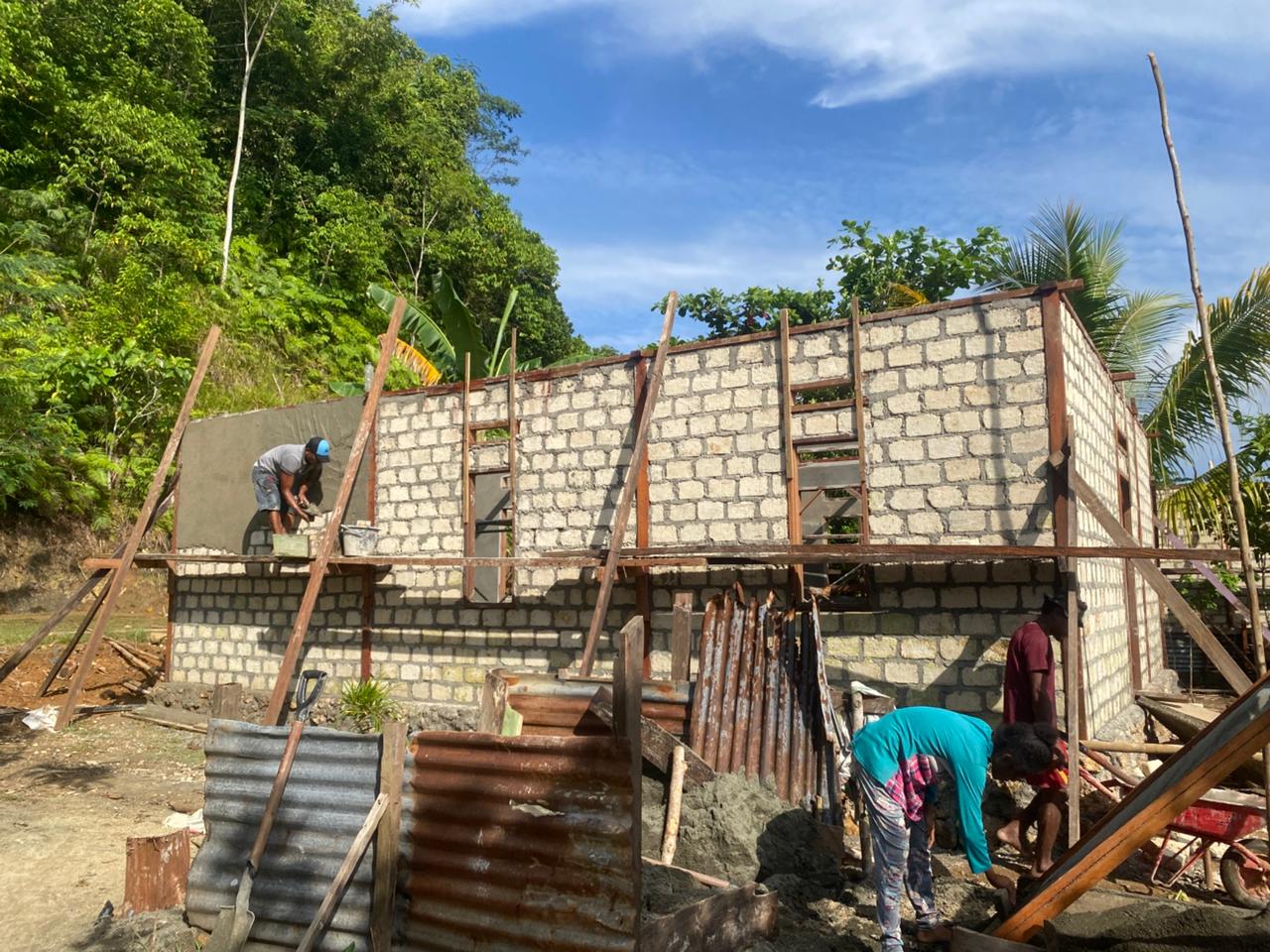 “Pekerjaan sudah masuk tahap plester dinding. Walaupun di tengah bulan puasa, anggota yang muslim tetap semangat menyelesaikan pembangunan. Kami juga melihat warga sangat senang dan antusias melihat rumah mereka mulai berdiri kokoh,” ungkapnya.