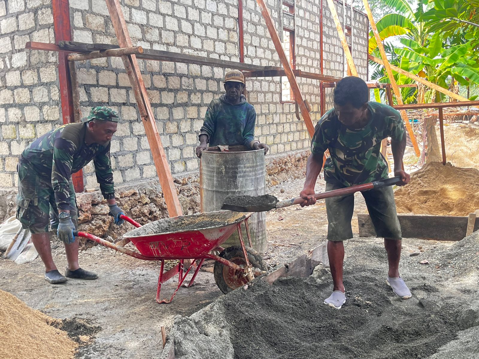 Pembangunan fisik berupa delapan unit rumah layak huni bagi warga terus dikerjakan dengan penuh semangat dan kekompakan antara personel Satgas dan masyarakat setempat. Kebersamaan tersebut menjadi wujud nyata kemanunggalan TNI dan rakyat di wilayah teritorial Kodim 1709/Yawa.