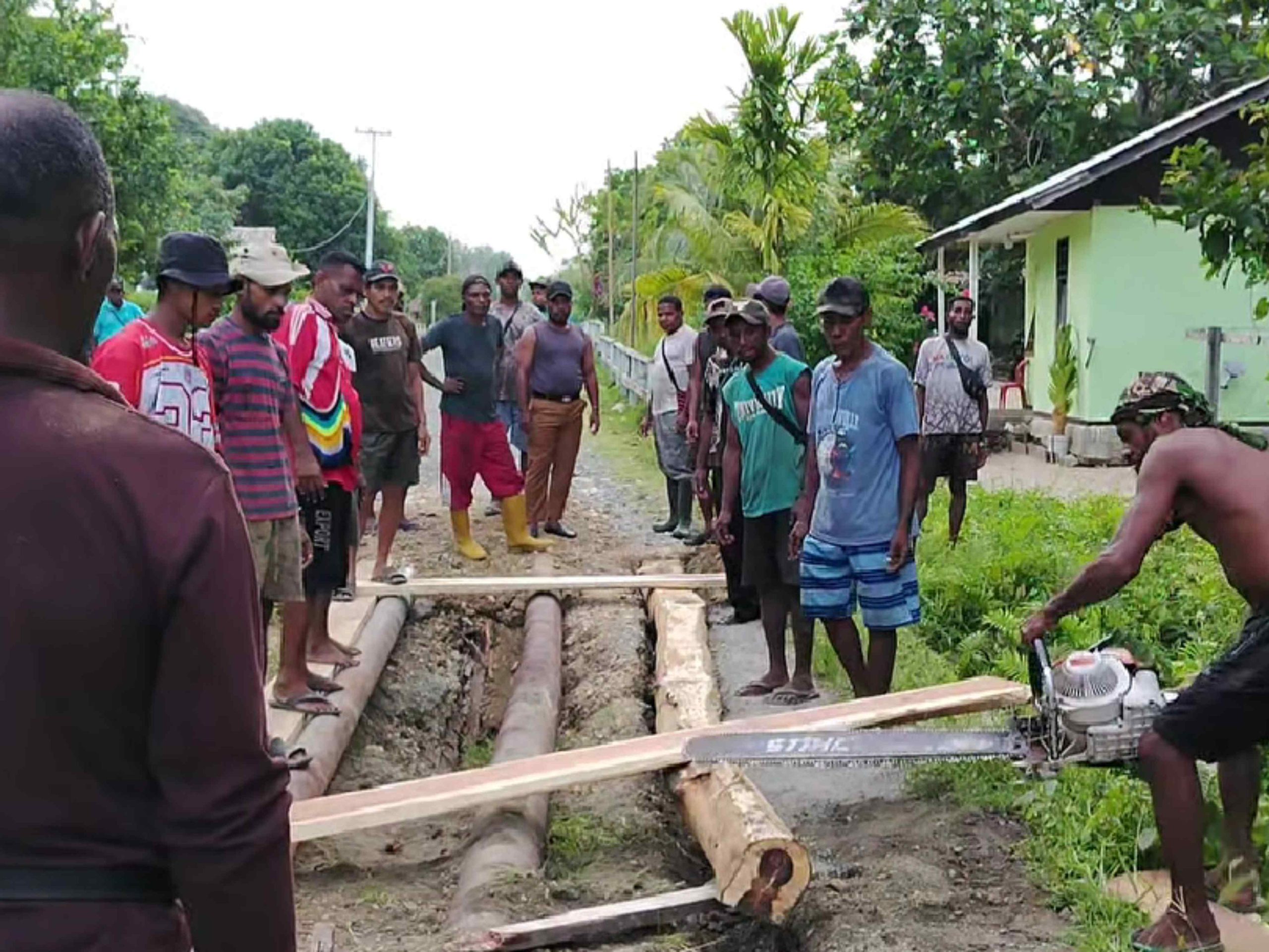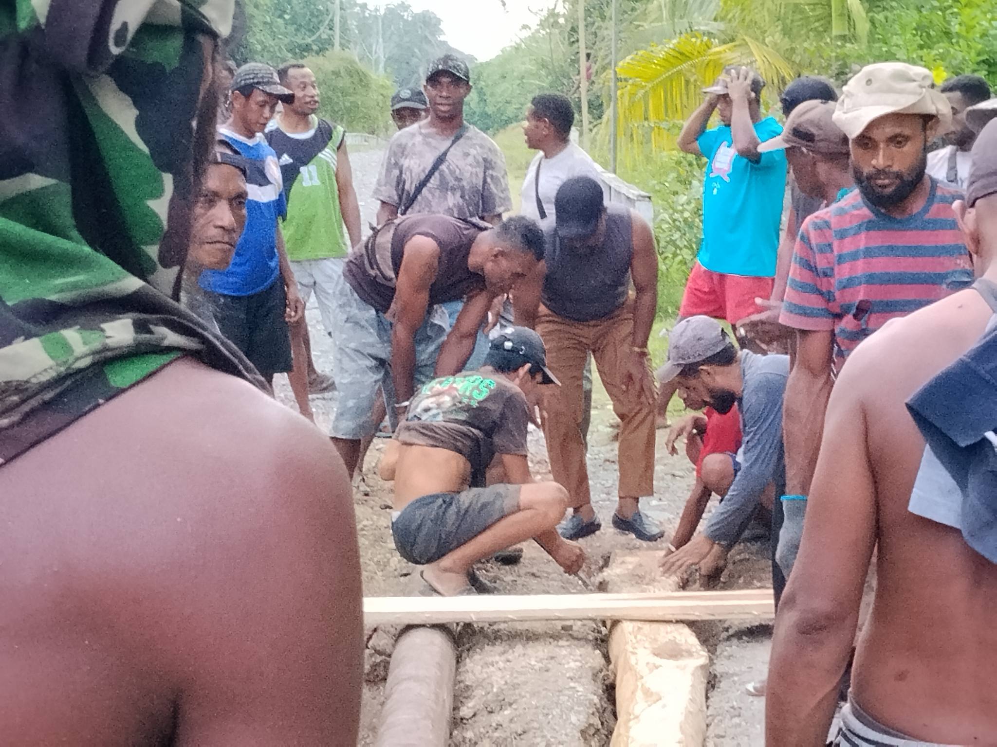 Serui Pos – Semangat kebersamaan dan gotong royong kembali ditunjukkan masyarakat Distrik Raimbawi, Kabupaten Kepulauan Yapen. Bersama Plt Kepala Distrik Raimbawi, Dody Lefta, warga dari beberapa kampung bergotong royong memperbaiki jembatan Kali Utamai yang berada di Kampung Woda.
