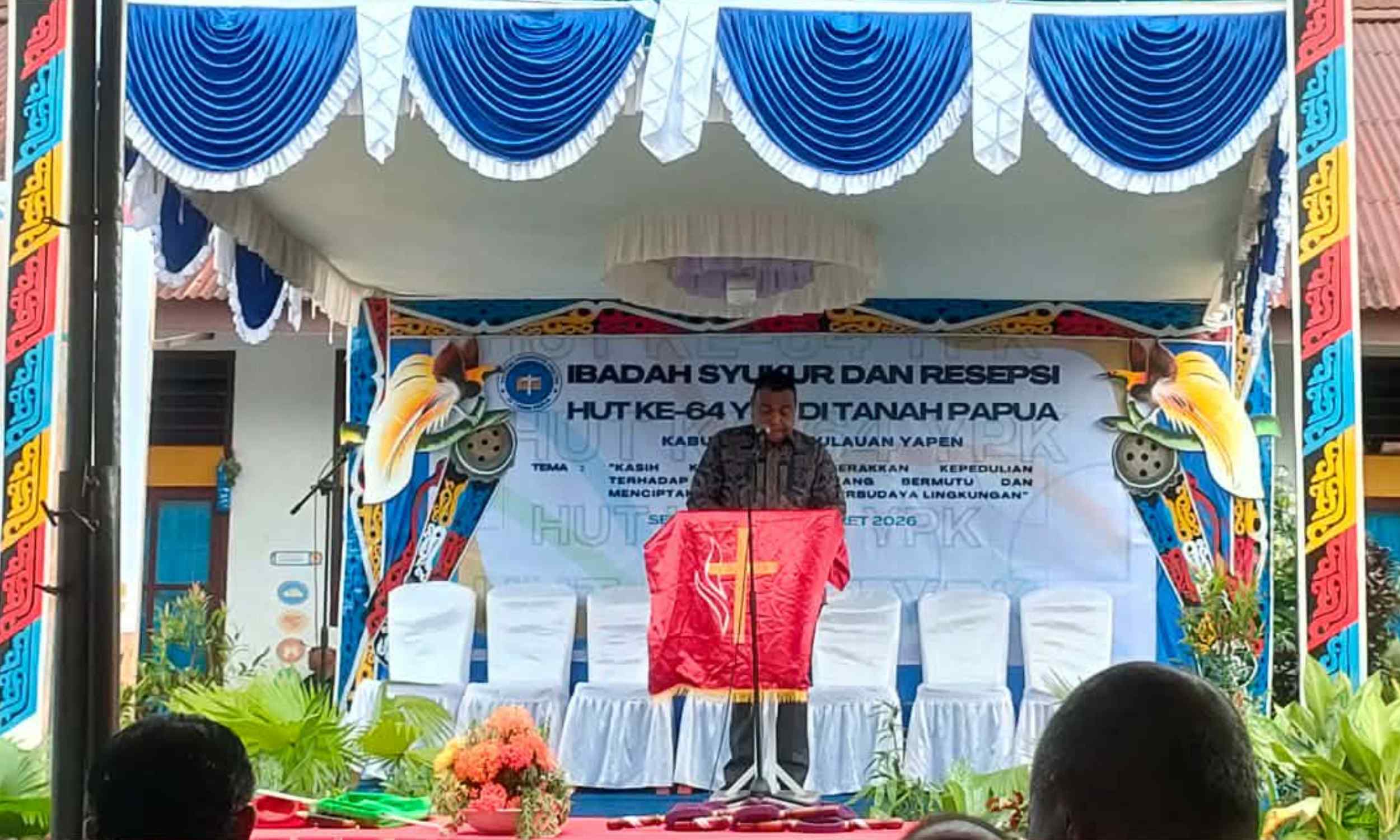 Serui Pos – Bupati Kabupaten Kepulauan Yapen, Benyamin Arisoy, menghadiri Ibadah Syukur Hari Ulang Tahun (HUT) ke-64 Yayasan Pendidikan Kristen (YPK) di Tanah Papua yang diselenggarakan oleh Pengurus Setempat Wilayah (PSW) YPK Kabupaten Kepulauan Yapen, Minggu (8/3/2026).