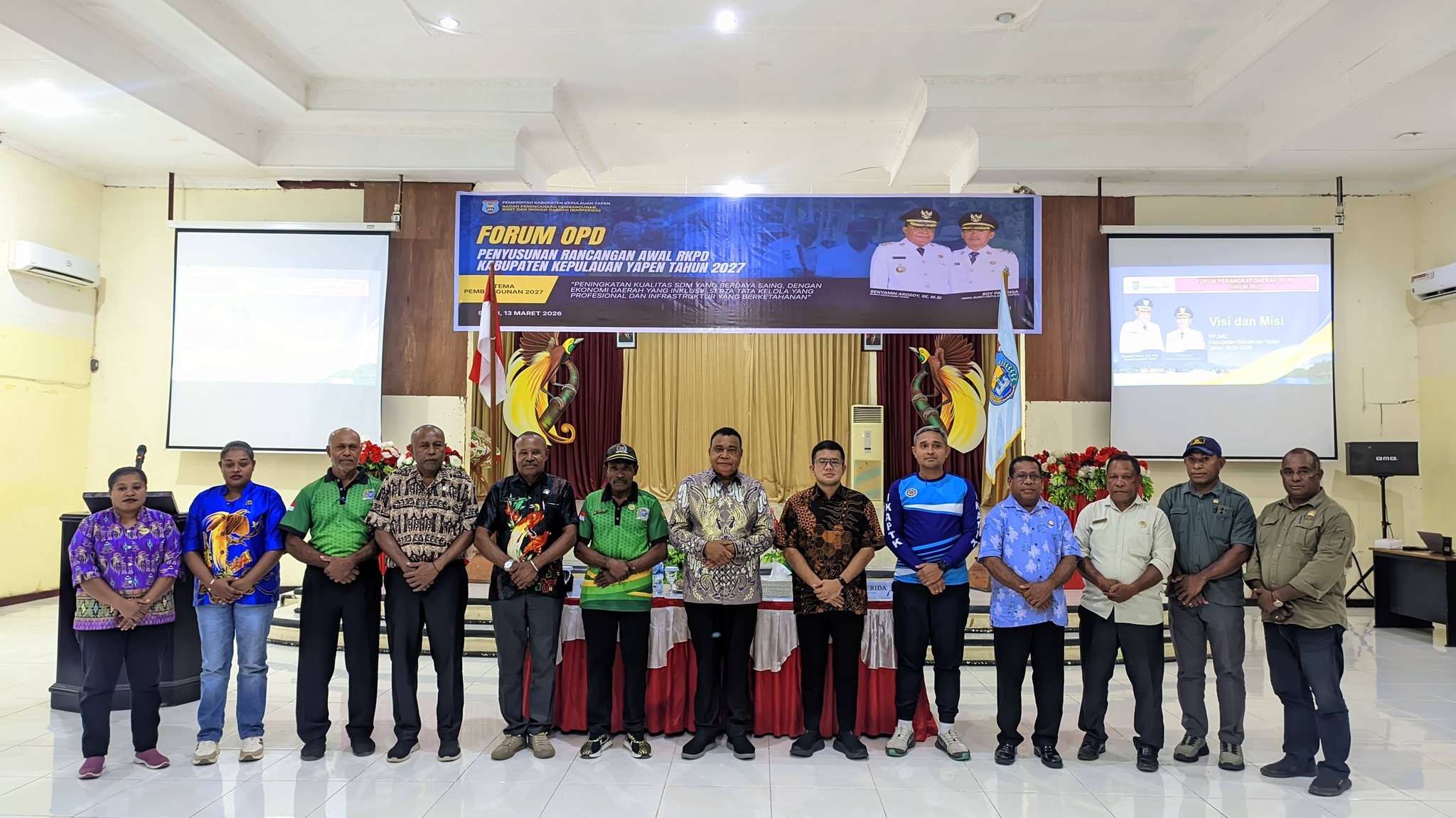 Serui Pos – Dinas Pekerjaan Umum, Penataan Ruang, Perumahan dan Kawasan Permukiman (PUPRPKP) Kabupaten Kepulauan Yapen menghadiri Forum Organisasi Perangkat Daerah (OPD) dalam rangka penyusunan Rancangan Awal Rencana Kerja Pemerintah Daerah (RKPD) Tahun 2027 di Gedung Silas Papare, Serui, Jumat (13/3/2026).