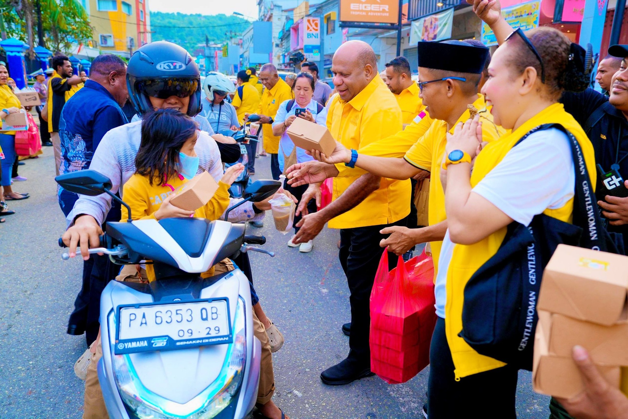 Serui Pos – Jajaran pengurus Partai Golkar Provinsi Papua menggelar kegiatan sosial berbagi takjil kepada masyarakat di Jalan Percetakan, Kota Jayapura, Senin (16/3/2026).