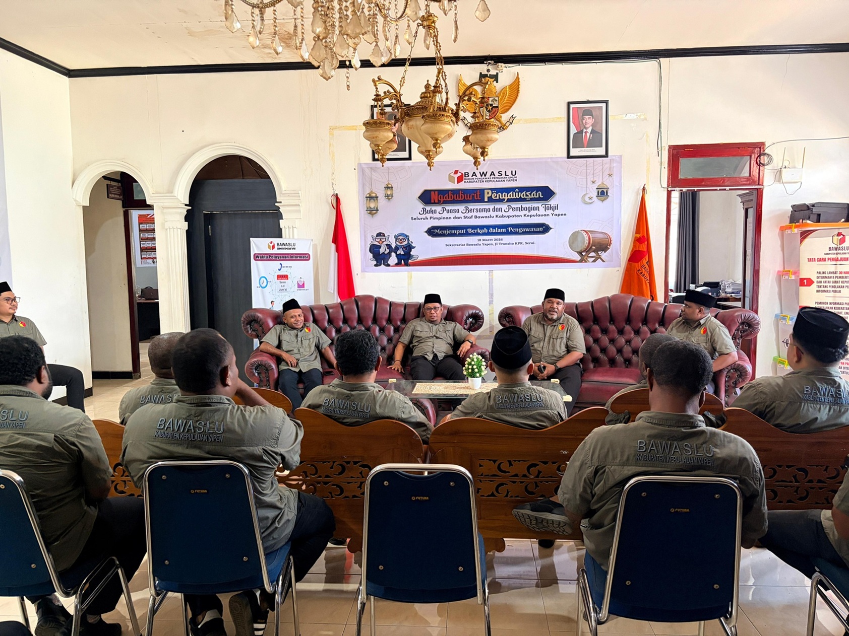 Kegiatan tersebut dilaksanakan pada Rabu (18/3/2026) di Kantor Bawaslu Kepulauan Yapen, Jalan Transito–KPR. Kegiatan dihadiri Ketua Bawaslu Kepulauan Yapen Herold M. Jandeday, bersama Anggota Hofni Y. Mandripon dan Salmon Robaha, serta Plt. Kepala Sekretariat Agung Sismianto. Seluruh pejabat dan staf di lingkungan Bawaslu Yapen turut ambil bagian.