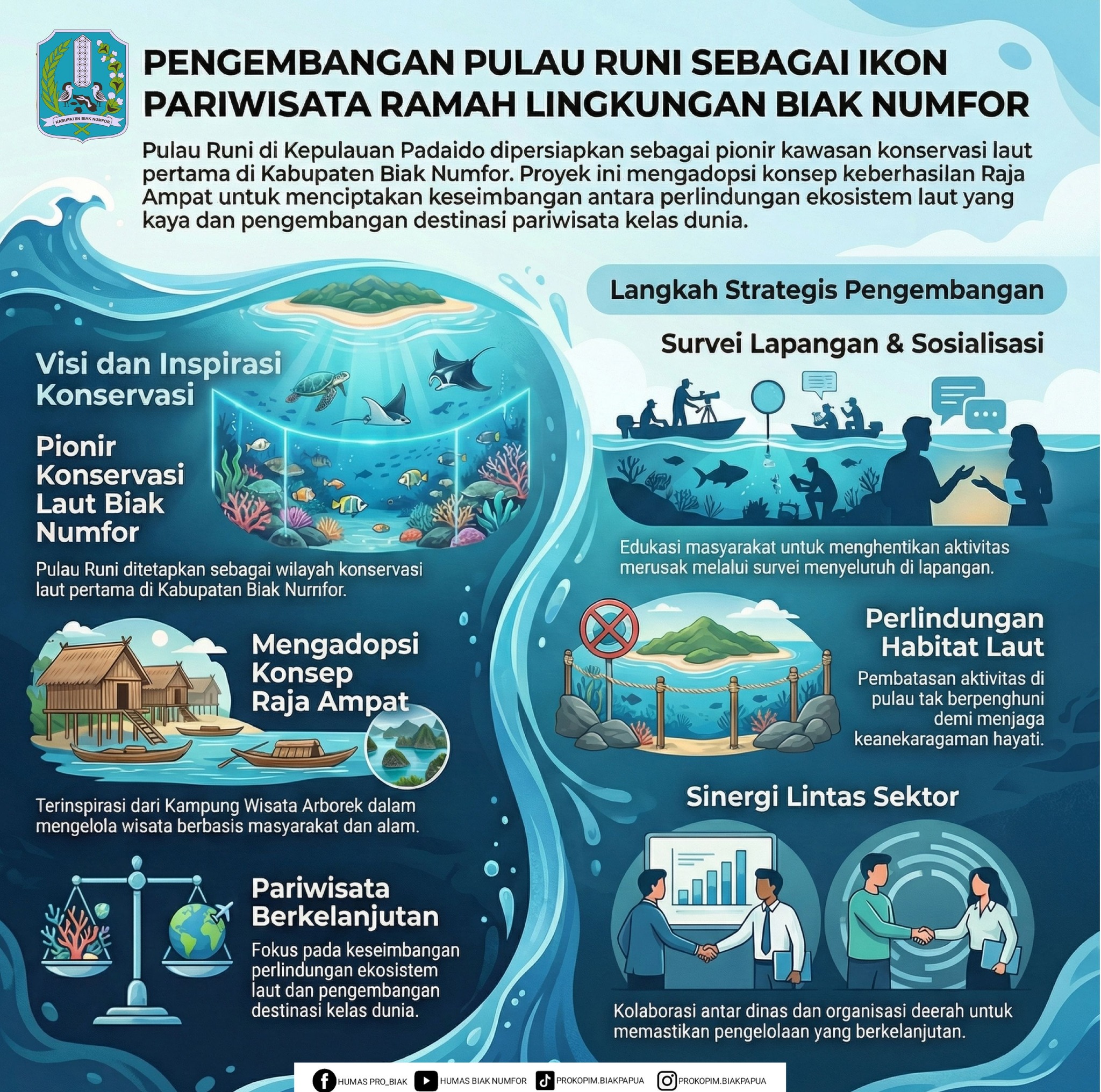 Bupati Biak Numfor, Markus Mansnembra, menegaskan bahwa tahapan awal yang akan dilakukan adalah kunjungan lapangan serta survei menyeluruh di Pulau Runi.