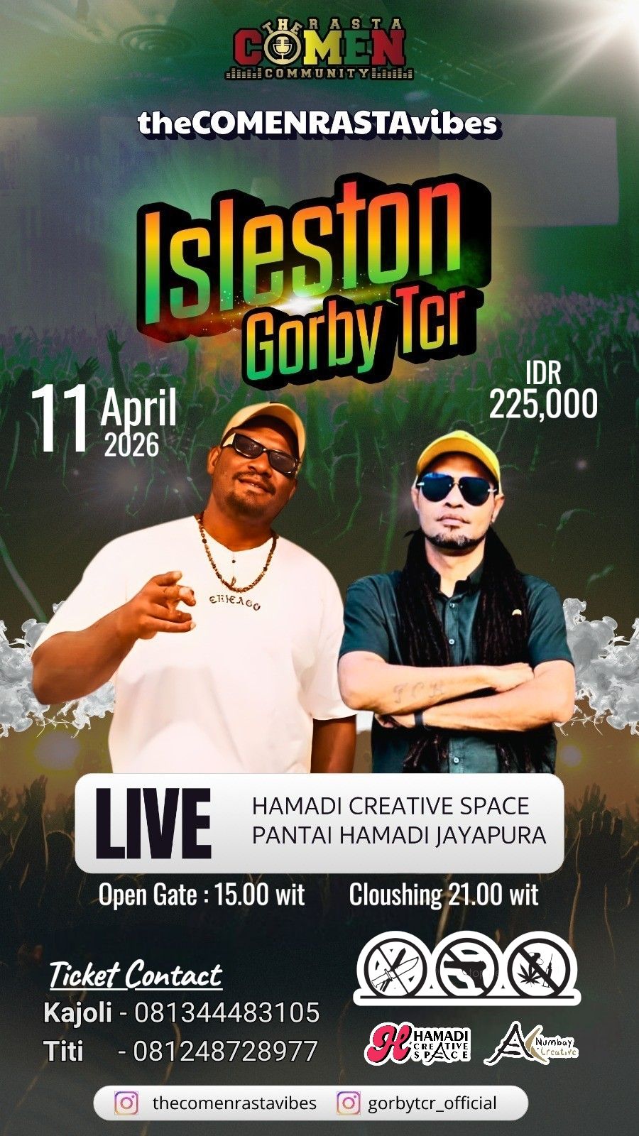SERUIPOS.COM | Rencana konser musik bertajuk theCOMENRASTAvibes yang menghadirkan Isleston dan Gorby TCR di Hamadi Creative Space, Jayapura, resmi dibatalkan setelah tidak mendapatkan izin pelaksanaan dari pihak berwenang.