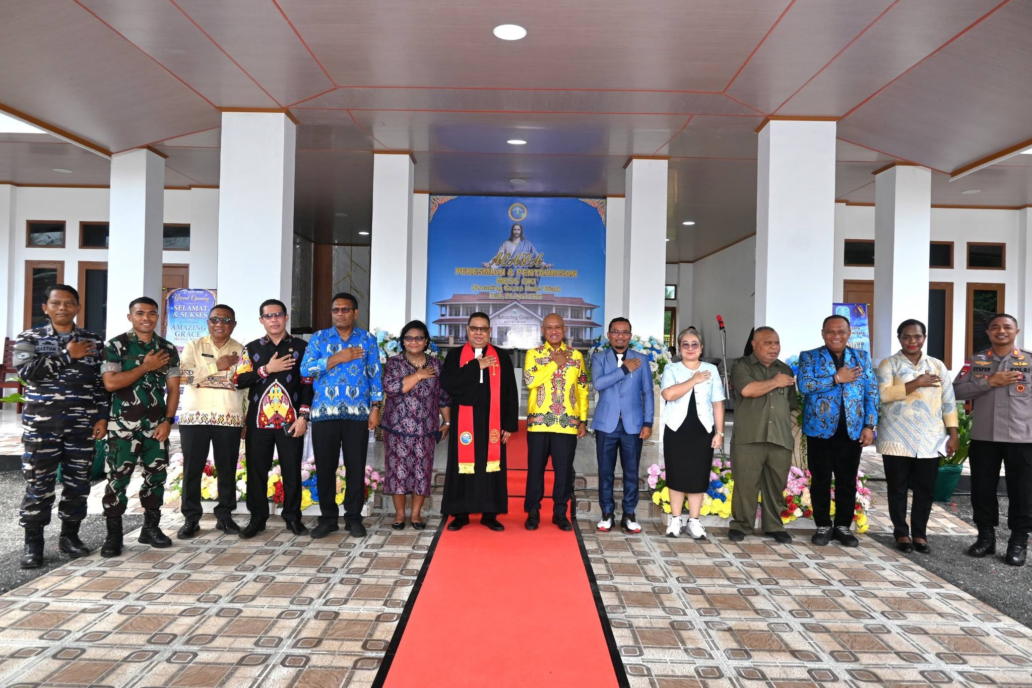Dalam sambutannya, Bupati Markus menegaskan bahwa dukungan pemerintah terhadap pembangunan gedung ini merupakan bentuk komitmen nyata dalam mendukung Tri Panggilan Gereja, yakni bersekutu, bersaksi, dan melayani.